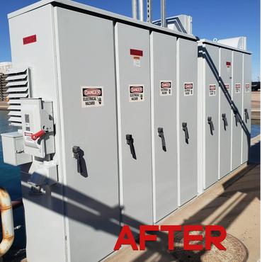 As part of site improvement projects at various substations and power plants, PSI refinished the exterior of the MCC cabinets. This work improves the appearance of the electrical equipment and contributes to a cleaner and more professional facility, reflecting a high standard of maintenance.